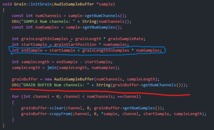 I messed up the simplest calculation late at night and I was trying to play a negative amount of samples. That won’t work.