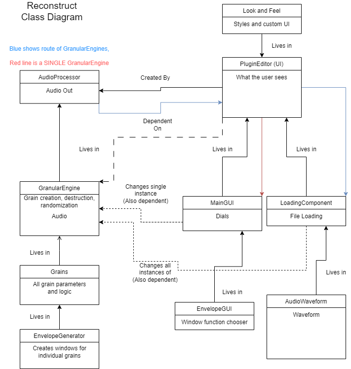 The code was not very modular, and almost all of the data passed through “AudioProcessor” in order to reach a destination. This was a terrible solution and introduced an unnecessary step in the flow. Instead, I create the GranularEngines in the AudioProcessor, and pass this as a pointer through to everything that needs to affect it.